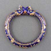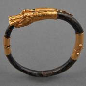Ebbenhouten slangarmband met 21kt gouden drakenkop, staart en bakslot met veiligheidsachtje, gemerkt 18kt, brutogewicht 16,2 gram, binnenmaat 6 cm