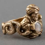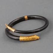 Gezwart houten armband met 18kt gouden beslag in de vorm van een slang, binnenmaat 6 cm