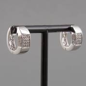 Paar 18kt witgouden klapcreolen met aan voor- en zijkanten pavégezet met elk 40 briljantgeslepen diamantjes, totaal circa 1.40ct, kleur G, kwaliteit VS/SI, brutogewicht 13,2 gram, circa 1,9 cm en 8mm breed
