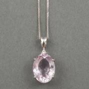 BWGG witgouden hanger gezet met ovaal gefacetteerde rozenkwarts, aan 18kt gouden gourmet schakelcollier, brutogewicht 7,0 gram, lengte circa 45 cm