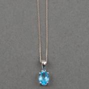 14kt witgouden gourmet schakelcollier, waaraan ovaal gefacetteerde topaas, circa 1.0ct, brutogewicht 0,8 gram, lengte circa 45 cm