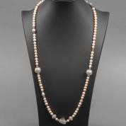 Sautoir van witte, zilverkleurige en bronskleurige gecultiveerde zoetwaterbarokparels, 114 cm