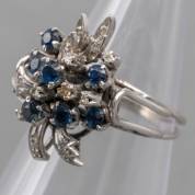 18kt witgouden clusterring gezet met blauwe saffier en achtkantiggeslepen diamant, mt. 17,25, brutogewicht 5,4 gram