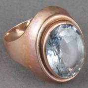 BWGG ring gezet met ovaal gefacetteerde synthetische spinel, mt. 18, brutogewicht 11,5 gram