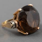 14kt wit- geel- en roségouden cocktailring, gezet met briljantgeslepen rookkwarts, mt. 17,5, brutogewicht 13,4 gram