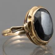 14kt gouden ring gezet met ovaal gefacetteerde hematiet, mt. 18, gewicht 4,0 gram
