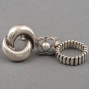 Drie zilveren ringen, twee in maat verstelbaar, mt. 17, gewicht 13,1 gram