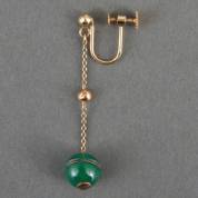 Enkele 14kt gouden oorhanger met schroefmechaniek waaraan jade bol, brutogewicht 2,5 cm, lengte circa 4 cm