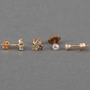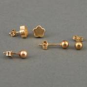 Paar 14kt gouden bloemvormige oorstekers, paar 14kt gouden bolvormige oorstekers, en enkele BWGG bolvormige oorsteker, gewicht 2,7 gram, bloemvorm Ø 0,7 cm, bolvorm Ø 0,5 cm