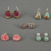 Vijf paar zilveren oorstekers en hangers, diverse gehaltes, waarvan vier gezet met natuursteen, waaronder rodochrosiet en watermeloentoermalijn, brutogewicht 14,0 gram