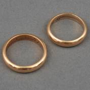 Paar 14kt gouden bandringen, mt. 16 en 17,5, beide binnenzijden gegraveerd, gewicht 9,0 gram