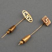 Twee 14kt gouden dasspelden: CNV en Rabobank, gewicht goud 2,4 gram,