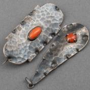 Gehamerde zilveren broche en hanger gezet met cabochongeslepen bloedkoraal, meester: D. Gaillard, Schoonhoven, 1935-1936, brutogewicht 9,2 gram, broche 4,5 × 2 cm