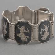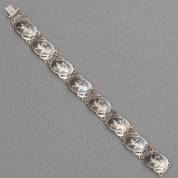 1e gehalte zilveren schakelarmband, elke schakel met gegraveerde Oosterse godheid, gewicht 14,0 gram, lengte circa 18 cm