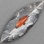 Zilveren broche gezet met carneool, circa 1930 brutogewicht 5,2 gram, 5,5 × 2 cm