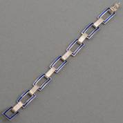 2e gehalte zilveren schakelarmband met open blauwgeëmailleerde schakels, brutogewicht 25,2 gram, lengte circa 19 cm