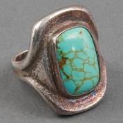 2e gehalte zilveren ring gezet met turkoois, meester: A. & J.F. van Dunné, Den Haag, circa 1960, brutogewicht 9,3 gram, mt. 17,5