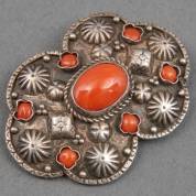 3e gehalte zilveren broche gezet met bloedkoralen, 4,5 × 3,3 cm, brutogewicht 9,1 gram