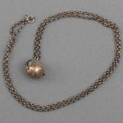 2e gehalte zilveren jasseron schakelcollier waaraan een 1e gehalte zilveren bolvormige portrethanger met ruimte voor zes ronde portretjes, Mexico, gewicht 29,2 gram, lengte circa 76 cm