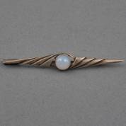 2e gehalte zilveren broche gezet met cabochongeslepen maansteen, meester: Fa. Gebr. Reggers, Amsterdam, circa 1930, 6,5 cm, brutogewicht 5,17 gram