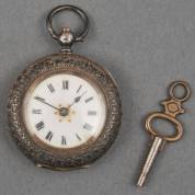 Ottomaans 3e gehalte zilveren vestzakhorloge, uitvoering Billodes, adres K. Serkisoff & Co., Constantinople -gebruikssporen-, Ø 5 cm