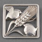 1e gehalte zilveren broche: vogels bij graanhalm, genummerd 250, ontwerp Arno Malinowski (1899-1976), uitvoering Georg Jensen, Denemarken, 3,7 × 3,7 cm, gewicht 18,7 gram