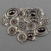 Twaalf zilveren sluitingen, veelal gezet met granaat, brutogewicht 48 gram