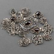 Veertien zilveren sluitingen, veelal gezet met granaat, brutogewicht 60 gram