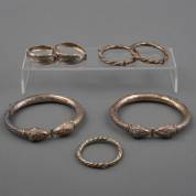 Diverse etnisch zilveren sieraden, waaronder Balinese armband met bijpassende ring, in maat verstelbaar, gewicht 92 gram, lengte armband 18 cm
