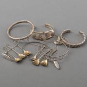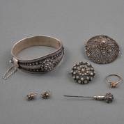 Diverse zilveren sieraden, diverse gehaltes, veelal met Zeeuwse knoop gedecoreerd, brutogewicht 71,2 gram, ringmaat 17