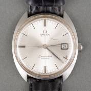 Stalen herenpolshorloge Omega Seamaster Cosmic, Cal. 611 uurwerk, referentienummer 136017, aan zwart lederen band, wijzerplaat Ø 36 mm