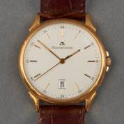Verguld metalen herenpolshorloge Maurice Lacroix aan bruin lederen band -niet getest-