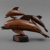 Palissander beeld: springende dolfijnen, jaren '60/'70, 27 × 38 × 11 cm