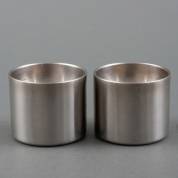 Paar rvs kandelaars, model Cylinda, ontwerp Arne Jacobsen, uitvoering Stelton, Denemarken, jaren '70, 4 × Ø 5 cm