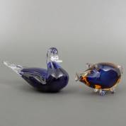 Twee glazen dierfiguren: eend en varken, de eend gemerkt Gränna Glasbruk, Zweden, 14 × 24 × 11 cm