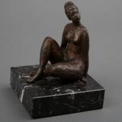 Judith van Westreenen (hedendaags), zittend naakt, brons, niet gesigneerd, op natuurstenen basement, afmetingen inclusief basement 13,5 × 10 × 10 cm