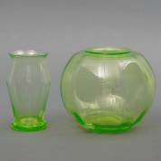 Annagroen lathyrusvaasje en vaas model 'Tomaat', beide ontwerp Willem Jacob Rozendaal, uitvoering Kristalunie, Maastricht -gebruikssporen, tomaatvaasje met krasjes-, 14 × 18 cm