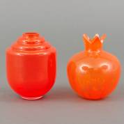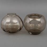 Twee rookglazen vaasjes: model 'Tomaat' en model 'Mira', ontwerp Willem Jacob Rozendaal, uitvoering Kristalunie, Maastricht, 14,5 × Ø 18 cm