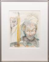 Tom Eyzenbach (1951), zelfportret, gemengde techniek op papier, r.o. gesigneerd en gedateerd '88, herkomst: Collectie Galerie Jas, Utrecht, 40 × 34 cm