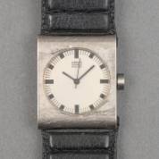 Bruno Ninaber van Eijben (1950), titanium herenpolshorloge aan zwart lederen band, 1984 -gebruikssporen-