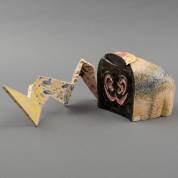 Twee keramische objecten: Betty Muller (1946), staande geometrische vorm, en polychroom geglazuurd dekseldoosje, aan binnenzijde gesigneerd 'Aud H' en gedateerd '87, beide herkomst: Collectie Galerie Jas, Utrecht -enkele barstvormige bakfoutjes, klein chipjes van deksel-, 18 × 19 × 17 cm