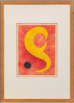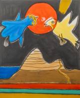 Corneille (1922-2010), compositie met twee vogels berg, zeefdruk 77/200, r.o. gesigneerd en gedateerd '98, 40 × 33 cm, daarbij: brochure: Corneille in Vogelvlucht, Van Reekum Museum, Apeldoorn, 1990