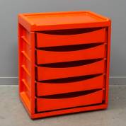 Oranje kunststof ladekastje met vijf lades, uitvoering Meurop , België, circa 1970, 69 × 58 × 40 cm
