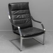 Zwart lederen relaxfauteuil op verchroomd metalen onderstel, ontwerp Rudolf Bernd Glatzel, uitvoering Knoll, jaren '70 -lichte gebruikssporen-, 105 × 68 × 82 cm
