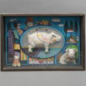 Anke Engelse (1944), 'Feestvarken', sculptuur en schildering in beglaasd kistje, 33 × 48 × 7,5 cm