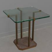 Glazen tafeltje met bronzen voet, model T18, ontwerp en uitvoering Peter Ghyczy, laatste kwart 20e eeuw -kleine beschadiging aan glasplaat-, 50 × 51 × 51 cm