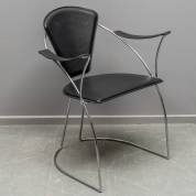 Chromen armstoel met zwarte leren bekleding, uitvoering Arrben, Italië, jaren '80 -krasjes, leer een beetje sleets-, 80 × 61,5 × 53 cm