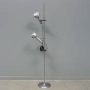 Stalen en aluminium lamp met twee verstelbare spots, model Zürich, uitvoering Swiss International, jaren '60, hoogte 169 cm
