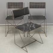 Drie verchroomd metalen buisframestoelen met zwartgelakte en geperforeerde metalen zitting, model X-line, ontwerp Niels Jørgen Hausen, uitvoering Hybodan As, Denemarken, jaren '70 -gebruikssporen, roestvorming, plekjes verfverlies-, 77 × 45 × 40 cm