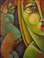 Willem van Scheijndel (1952-2017), vrouw in jurk, olieverf of acryl op doek, r.o. gemonogrammeerd en gedateerd '99, 100 × 110 cm